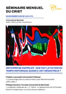 • Vendredi 9 avril 2021, 14 h : Invitation à Éric Debacq (Université de Montréal): «Personnage de comédie baroque ou vrai possédé du diable: le ‘sorcier’ innu dans les Relations de Paul Lejeune (1632-1642)» . Pour y participer : https://uqam.zoom.us/j/84127446601